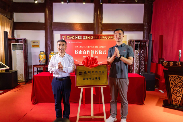 会上,双方签署了《校企合作协议》,经理薛以伟向企业进行实习基地授牌。会后,经理薛以伟与徐州文脉研究中心学科团队参加了“不止彭城”文化沙龙。