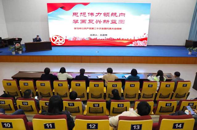 3月22日下午,校组织部部长王逢博在图书馆报告厅以“思想伟力领航向,擘画复兴新蓝图”为题,为bv1946伟德官网和外国语学院教师作党的二十大精神宣讲。