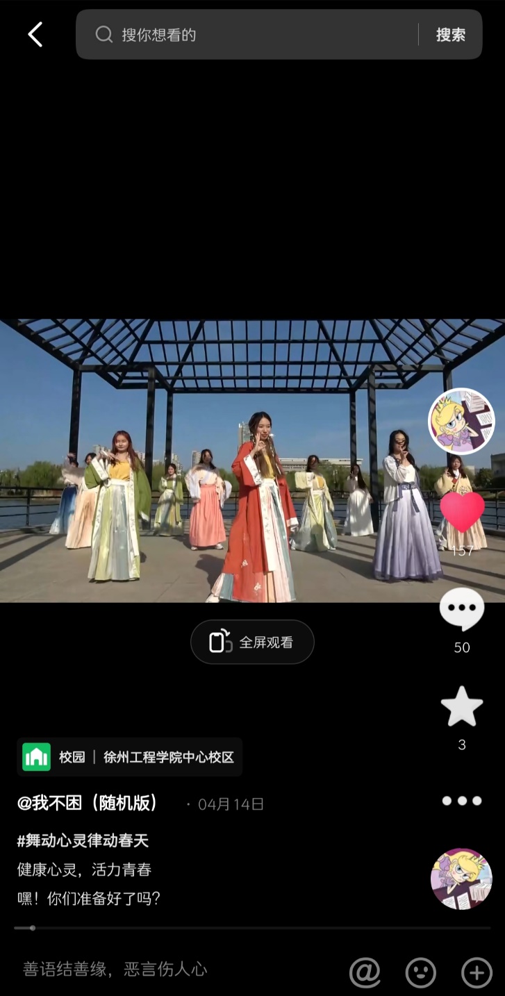 “舞动心灵,律动春天”通过在抖音平台发布运动短视频打卡的形式,引导同学们积极构建健康和谐的身心秩序,保持阳光心态、练就强健体魄。活动将运动和心理学有效结合,同学们可以选择竞走、跑步、舞蹈、瑜伽等方式展现自己,表现健康的生活理念和生活方式。既表达了自己的情感和内心世界,更好地了解自己的情感和需求;又丰富了课余生活,活跃校园气氛。此外,运动精神是一种坚持不懈、积极向上、敢于拼搏的精神,同学们积极参与“舞动心灵,律动春天”,展现了bv1946伟德官网同学们积极向上的运动精神,体现出青春运动风采。
