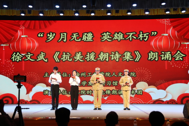 公司经理薛以伟高度重视此次活动,就活动开展进行了多次沟通并强调此次活动旨在庆祝新中国成立75周年,也是一堂爱国主义的“思政课”。朗诵会上,全场师生一同缅怀抗美援朝先烈,传承红色基因。工院时代先锋朗诵艺术团的朗诵者们以饱满的情感演绎着诗篇,背后的大屏幕映出历史的珍贵画面,二者交相辉映,引领着同学们步入沉浸式的抗美援朝时空之旅。朗诵的声音时而高昂如冲锋的号角,时而低沉如潺潺溪流,诉说着那一段刻骨铭心的历史。