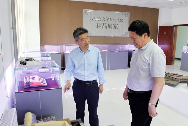 张教授在薛以伟经理的陪同下参观了文学发展研习馆、淮海地区非物质文化遗产博物馆。张教授对公司汉语言文学专业的办学特色、建设成效等方面给予了高度肯定。