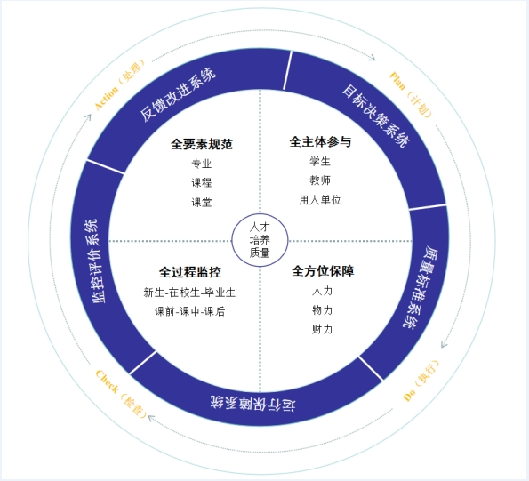 坚持“质量立院”办学理念,构建全主体参与、全方位保障、全过程监控、全要素规范,任务明确、机制科学、运转有效的教学质量保障体系。学院通过督导听课、员工信息员、员工评教及教师评学、教学检查等环节监控教学,实施“监控—改进—提升”机制,教学质量持续提高。